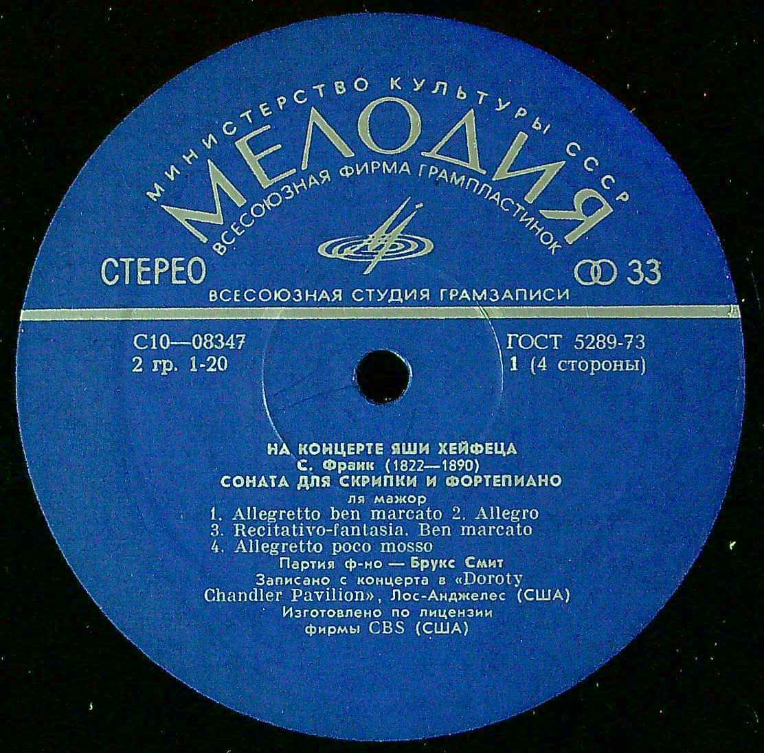 商品コード:REG-3908[露MELODIYA] J.ハイフェッツ(vn)/ 「ハイフェッツ:コンサート録音集」フランク, R.シュトラウス, バッハ, ブロッホ 他