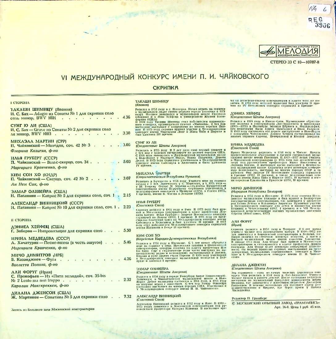 商品コード:REG-3906[露MELODIYA] 清水高師, M.マルティン 他(vn)/ 「第6回(1978)チャイコフスキー国際コンクール~Vn部門入賞者録音集」