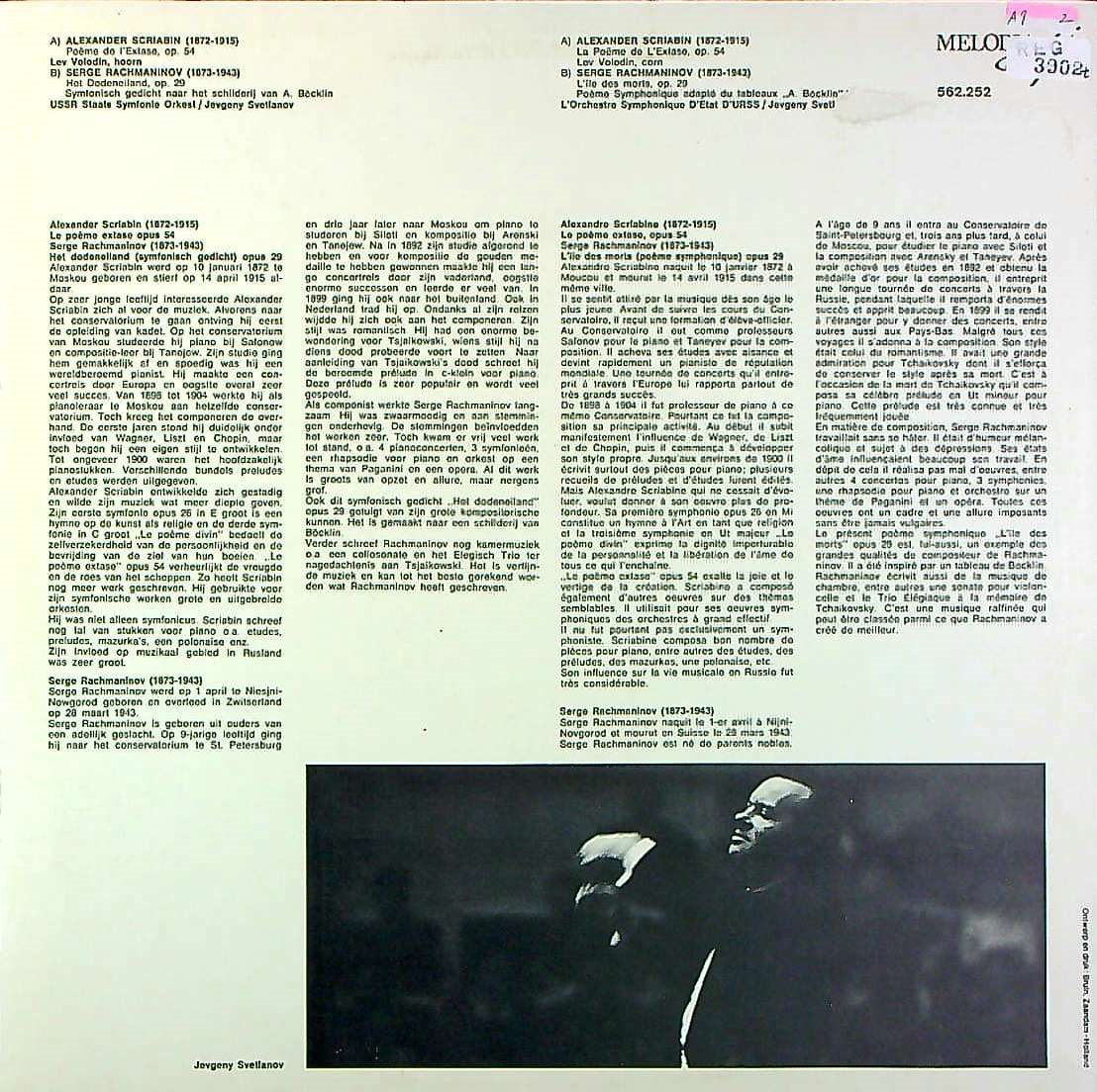 商品コード:REG-3902t[蘭MELODIYA] E.スヴェトラーノフ/ スクリャービン:交響曲4番「法悦の詩」, ラフマニノフ:交響詩「死の島」