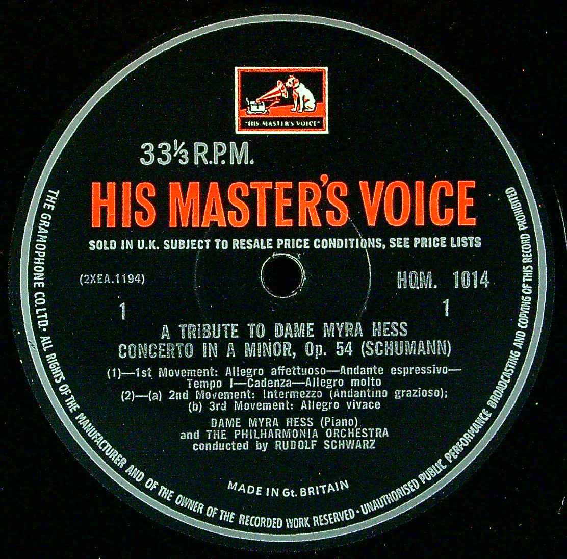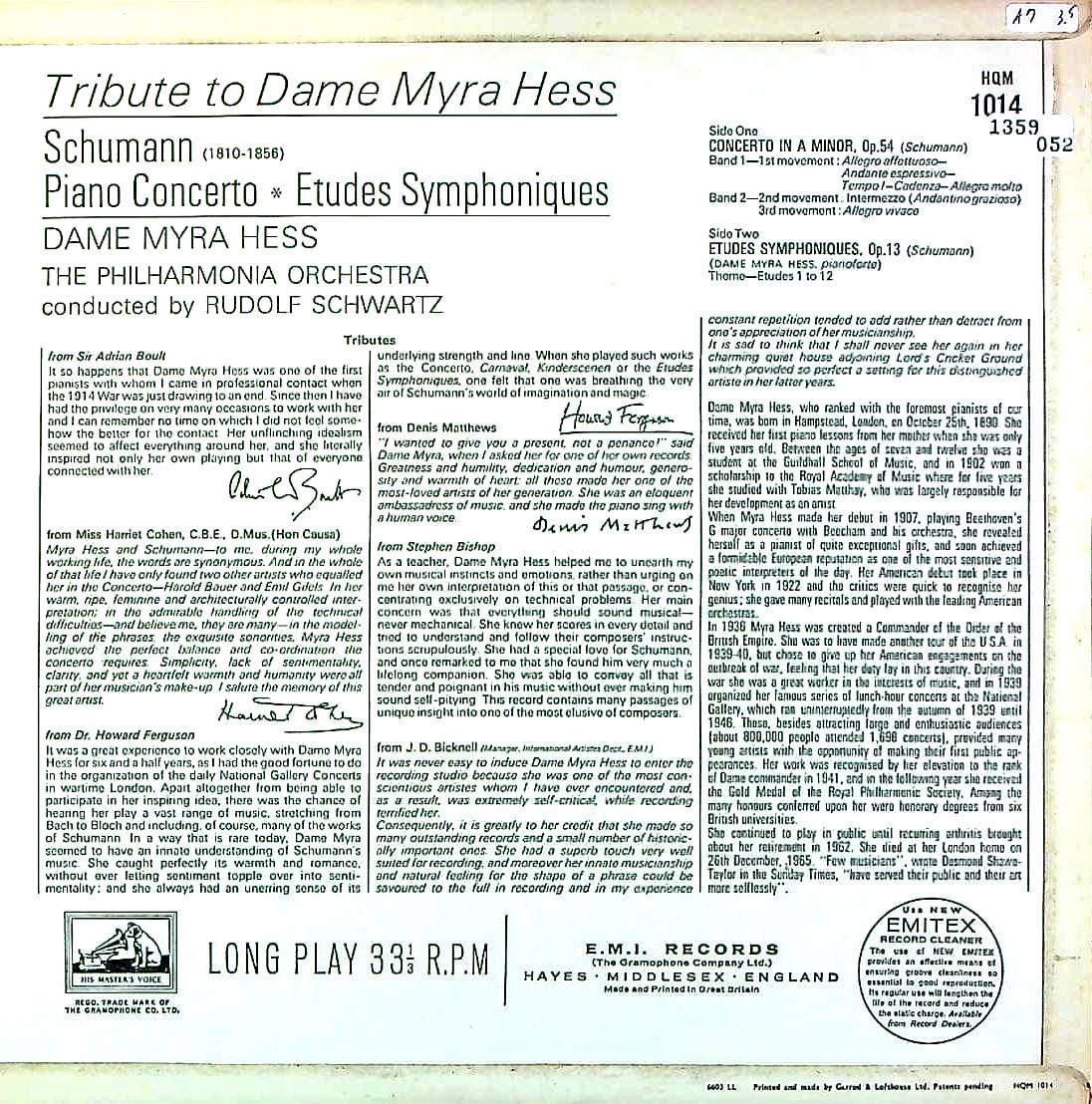 商品コード:1359-052[HMV] M.ヘス(pf)/ トリビュート・アルバム/シューマン:Pf協奏曲, シューマン:交響的練習曲