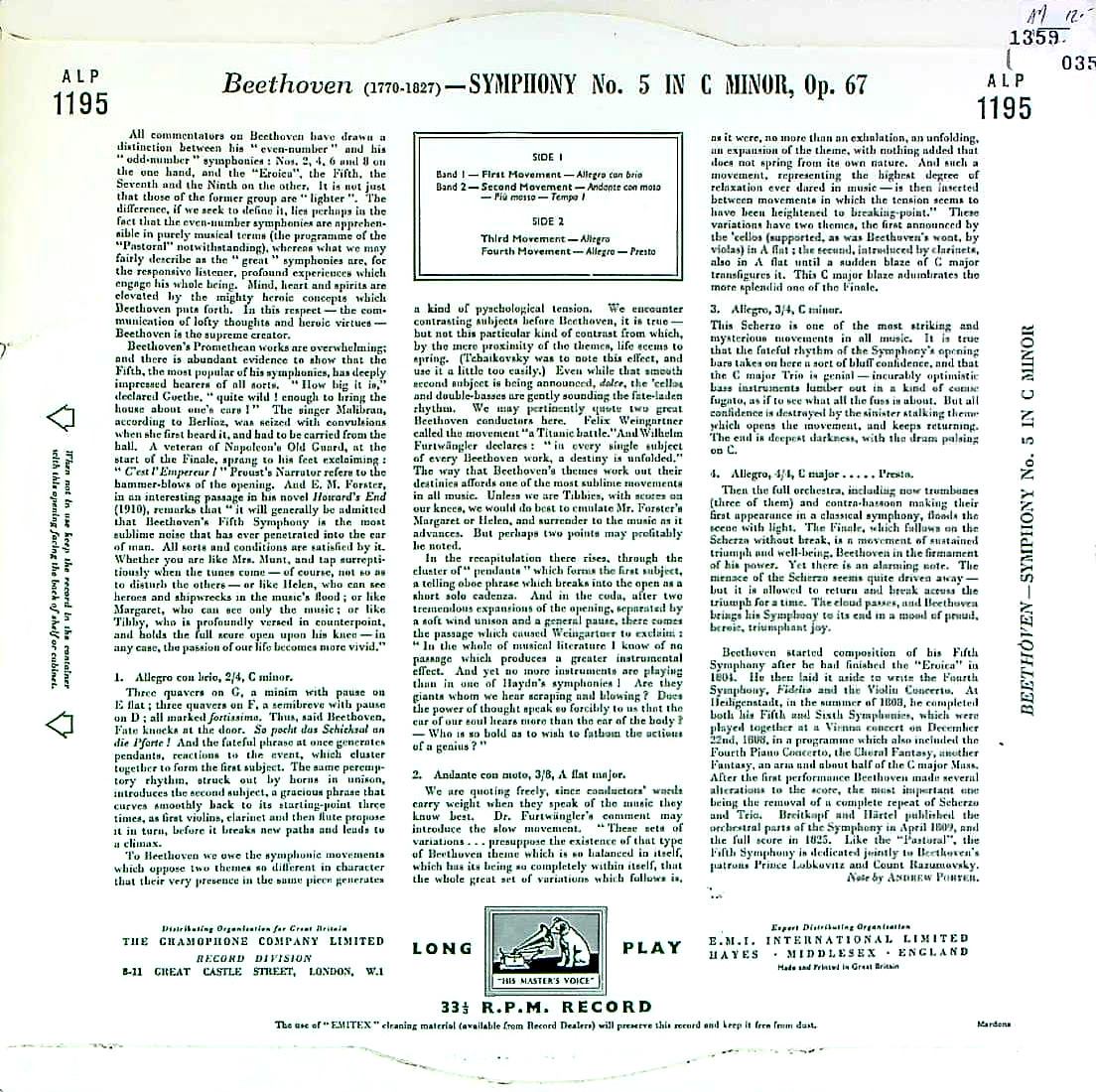 商品詳細:英GGプレス。フラット盤が存在する番号だが、現実にはGGプレスしか入荷が無い。GGプレスはRIAAカーブに切り直されているので、音が前に出てくる感じがある。かなり良い音だ。仏プレスと比べ音は滑らかでやや暗調だが、ノイズマージンも小さく聴きやすい。フルヴェン運命のベストな選択の一つではないだろうか。フラット盤がオリジナルだが、GG盤ならではの魅力があることも確か。各国盤が揃って初めて見えてくるものがある。是非ALPをお手元に!フラット盤で盤質7が出ればかなり高額になるだろう!この録音は世界的に有名で非常に多くの国でプレスされた。フルトヴェングラーの代表的な録音の一つ!