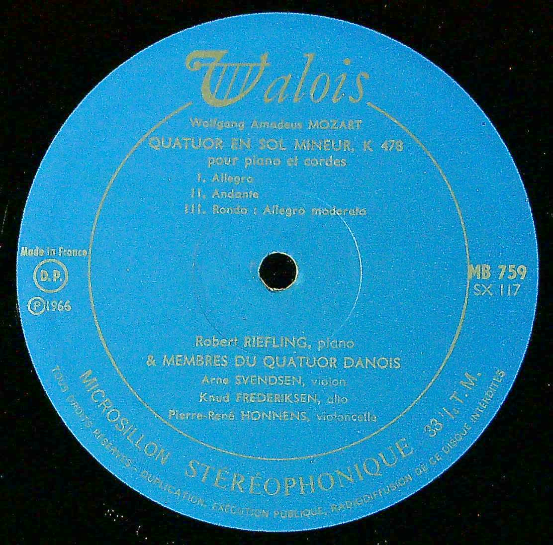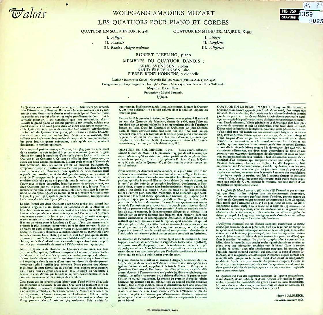商品コード:1359-025[VALOIS] R.リーフリンク(pf) ダノワQt.メンバー/ モーツァルト:Pf四重奏曲1番K.478, 2番K.493