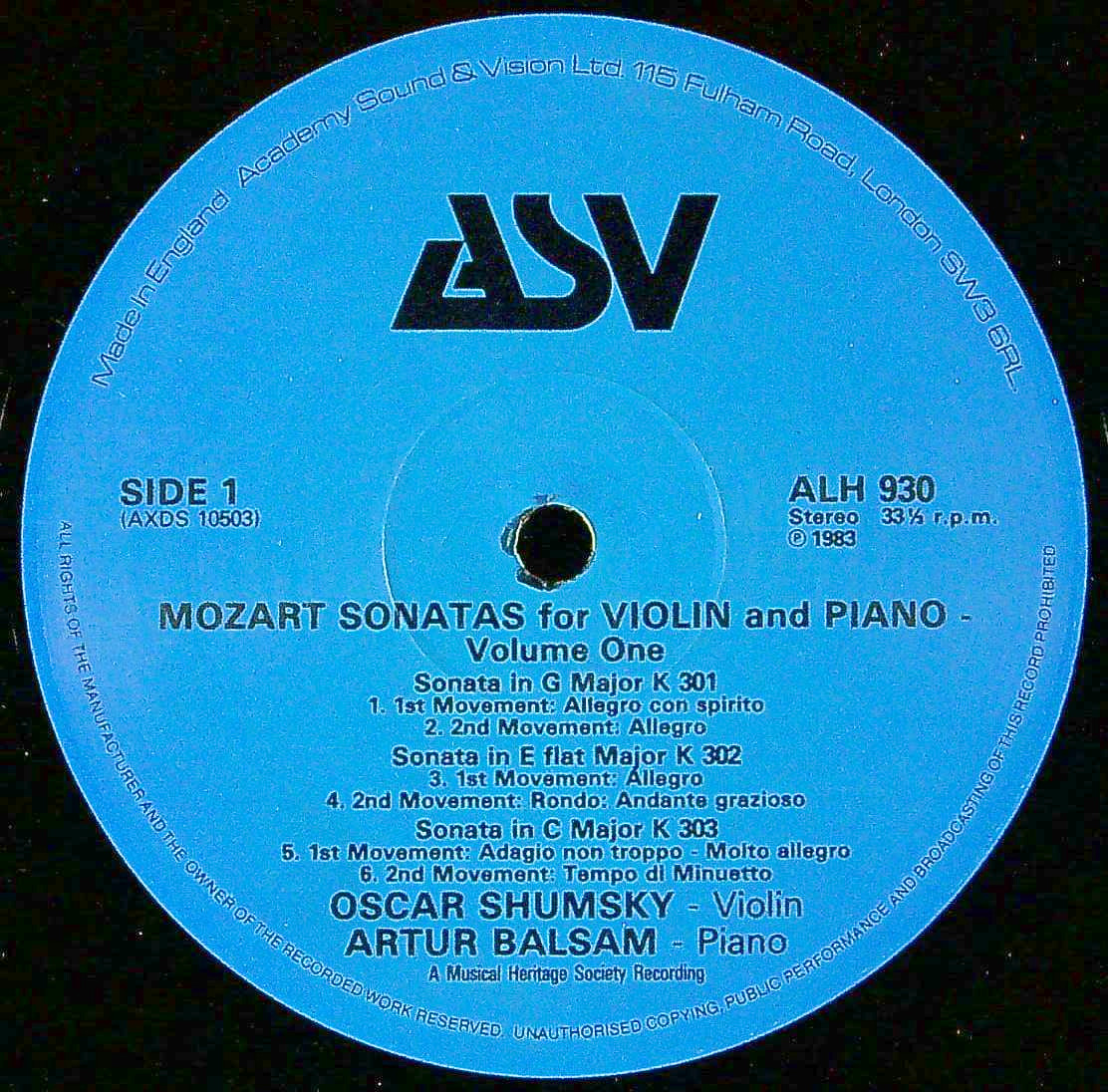 商品詳細:米MHS録音の英プレス。オスカー・シュムスキーは1917年米国生まれのロシア人。録音は少なく、特に'50年代は米ALLEGROなどに僅かしかない。近年バッハ無伴奏等で知られるようになったが、それは1980年代に入って英NIMBUS等に室内楽録音を入れ始めてからである。この録音も'80年代初期。欧州では英ASVからバラで発売されている。「遅咲きのヴァイオリニスト」と呼ばれる古参奏者の晩年録音。音も綺麗で、含蓄に富んだ表現と抑えた表情。第一級の内容!米国ではMHSレーベルからMHS 3475-80の箱入り6枚組で発売された。これはその英国プレス。英国ではASVレーベルからバラ6枚で発売されたと思われるが、これまで2枚しか見てない。1978年またはそれ以前の録音と思われる。シュムスキーの個性が発揮されたナイーヴな演奏で悪くない。よく弾むスタイルでモーツァルトらしさが溢れる演奏!英国盤の発売は1983年頃だが録音がデッドだったことが幸いしてかエコー分のほどんどない非常に良い音が出て来る。英国盤で聴けばぴったりとバランスが整い、素晴らしい全集となるだろう。但し英国盤をバラで集めるのは苦労すると思われる。ASVは Academy Sound and Vision.の略で1981 年 3 月に設立されたロンドンに本拠を置くレコードレーベル。DECCA、ARGO等の幹部によって創設された。