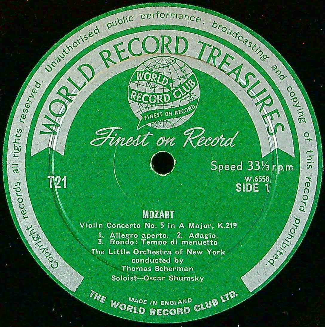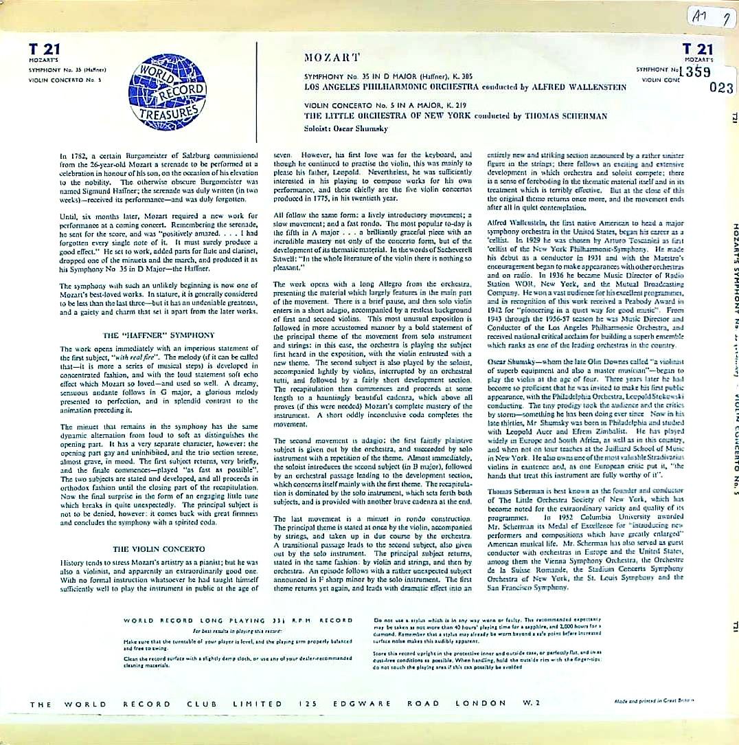 商品コード:1359-023[World Record Club] O.シュムスキー(vn) 他/ モーツァルト:Vn協奏曲5番K.219, 交響曲35番K.385「ハフナー」