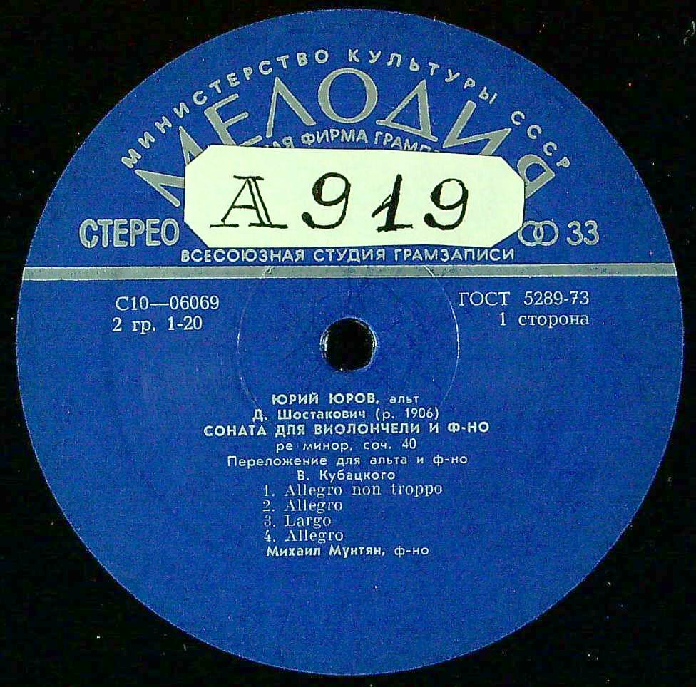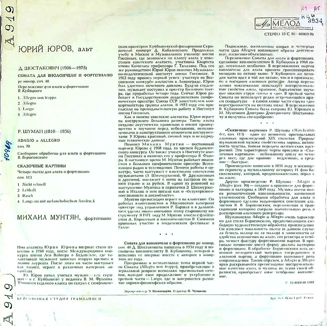 商品コード:REG-3934t[露MELODIYA] J.ユロフ(va)/ ショスタコーヴィチ:VcソナタOp.40(Va編曲版), シューマン:アダージョとアレグロ(Va編曲版) 他