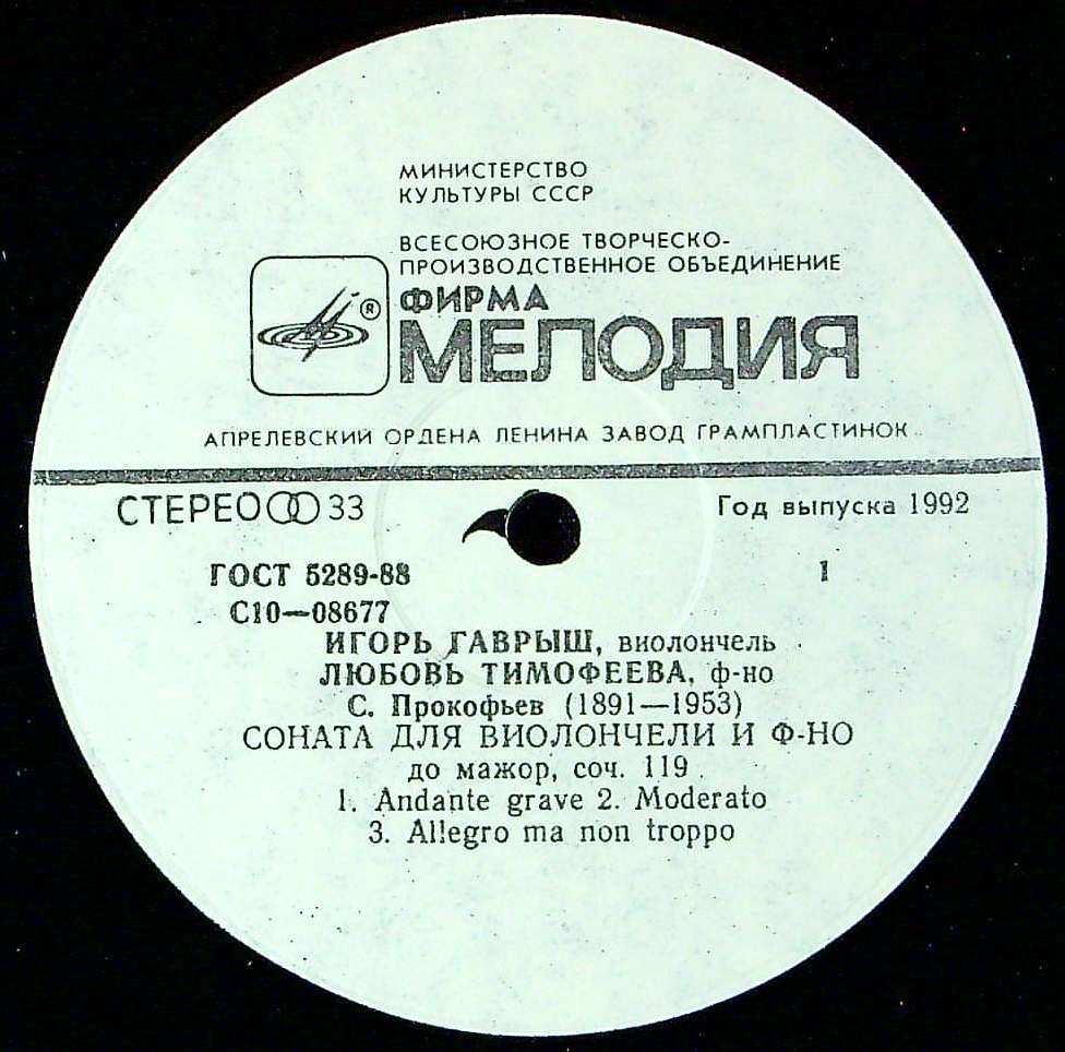 演奏者:I.ガヴリュシュ(vc)L.ティモフェーエワ(pf)