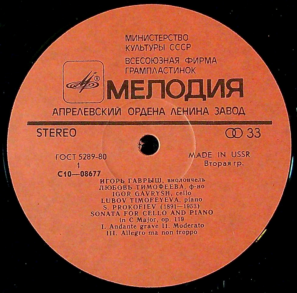 演奏者:I.ガヴリュシュ(vc)L.ティモフェーエワ(pf)