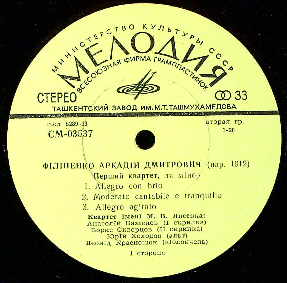 商品コード:REG-3924[露MELODIYA] リセンコQt. / フィリペンコ:SQ1番, 3番