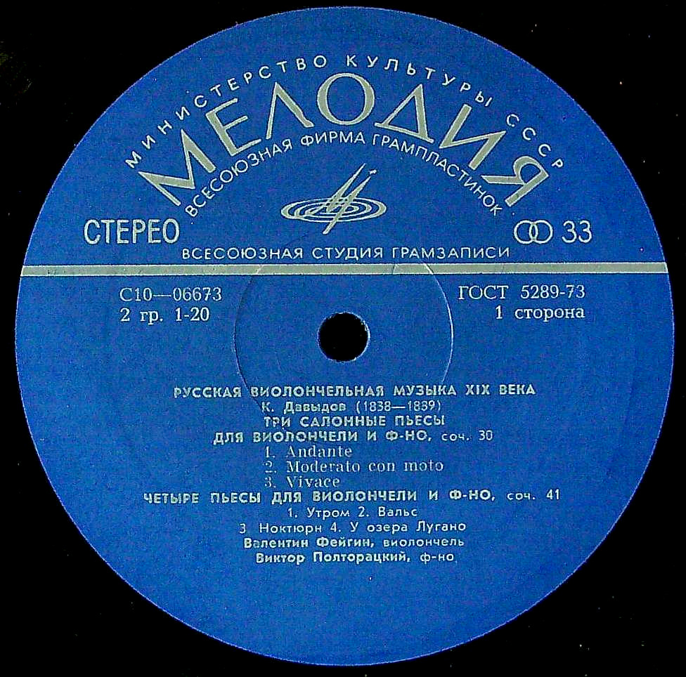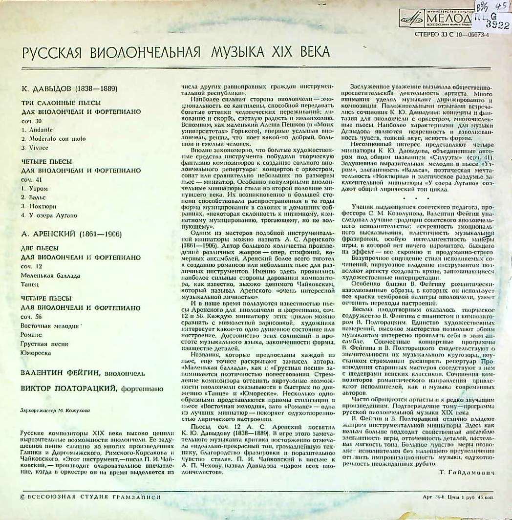演奏者:V.フェイギン(vc)V.ポルトラツキ-(pf)