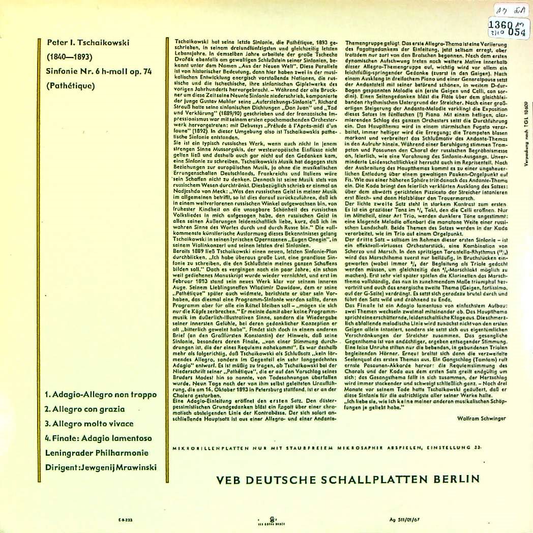 商品コード:1360-054t[ETERNA] K.ザンデルリング, E.ムラヴィンスキー/ チャイコフスキー:交響曲4番, 5番, 6番「悲愴」