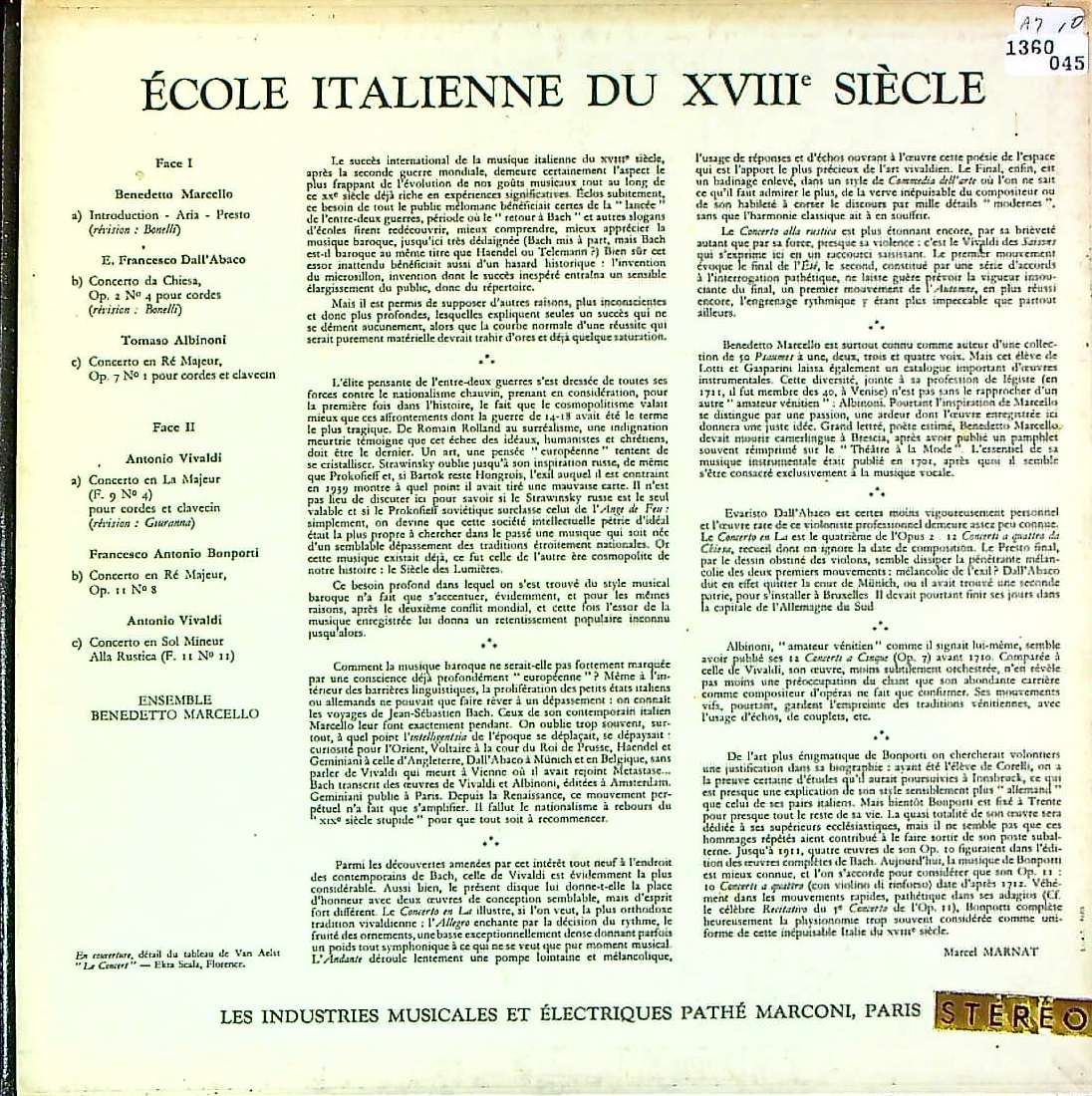 商品コード:1360-045[COLUMBIA] ベネデット・マルチェッロEns. / 18世紀イタリア学派Vol.1/マルチェッロ, ダッラーバコ 他