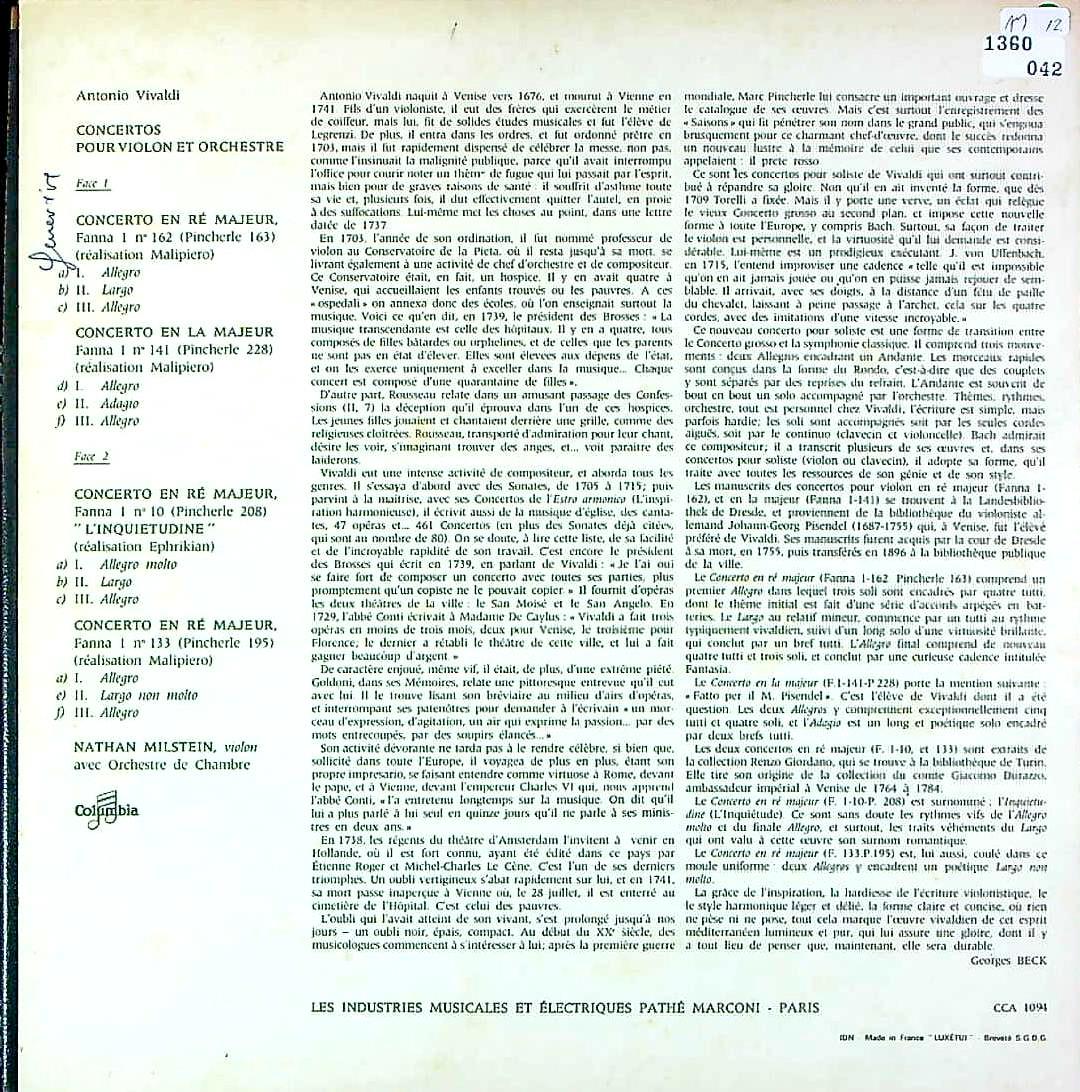 商品コード:1360-042[COLUMBIA] N.ミルシテイン(vn)/ ヴィヴァルディ:Vn協奏曲集(4曲)