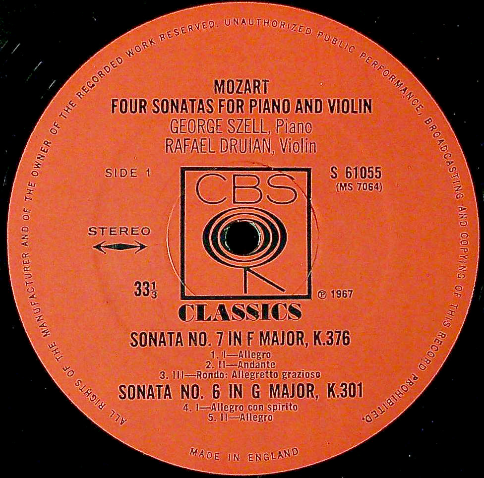商品コード:1360-020[CBS] R.ドルイアン(vn)/ モーツァルト:Vnソナタ集/32番K.376, 18番K.301, 21番K.304, 17番K.296