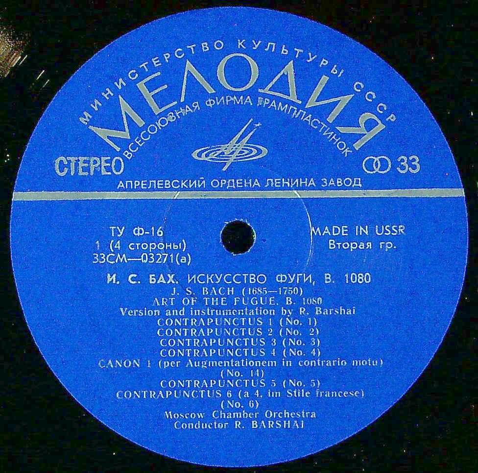 商品コード:1360-014[MELODIYA] R.バルシャイ/ バッハ:フーガの技法B.1080(R.バルシャイ編)