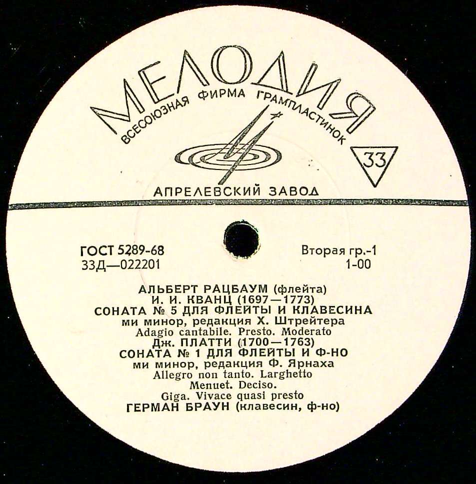商品コード:REG-3946[露MELODIYA] A.ラッツバウム(fl)/ 「Flソナタ集」クヴァンツ, プラッティ ヒンデミット, ナゴヴィツィン