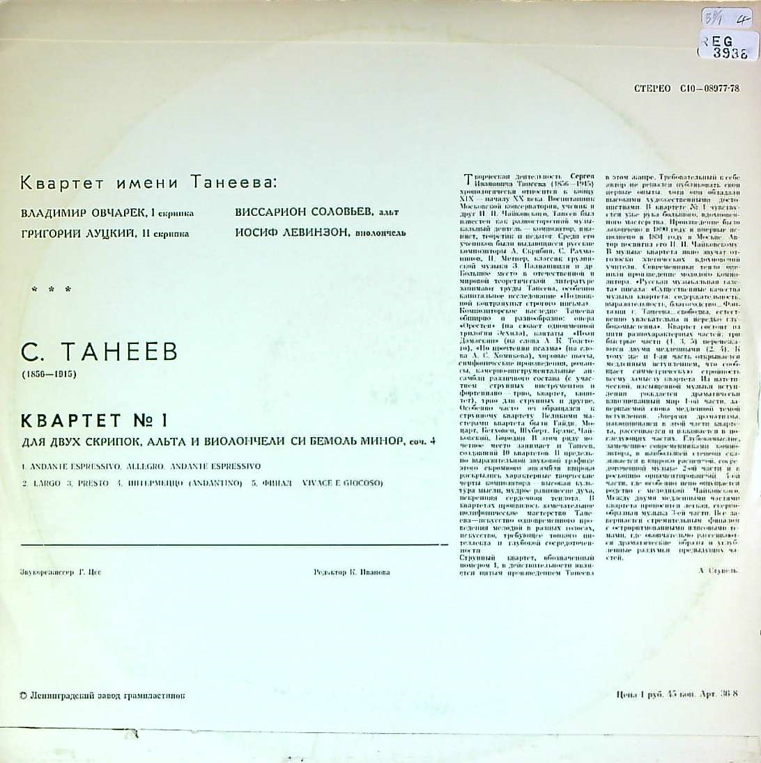 商品コード:REG-3938[露MELODIYA] タニェエフQt. / タニェエフ:弦楽四重奏曲1番