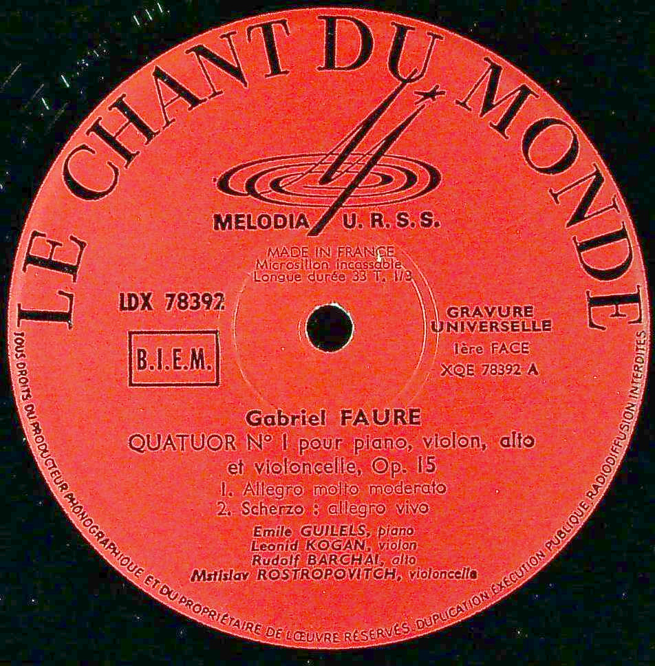 商品コード:1361-054b[Chant du Monde] ギレリス, コーガン,.バルシャイ, ロストロポーヴィチ/ フォーレ:Pf四重奏曲1番