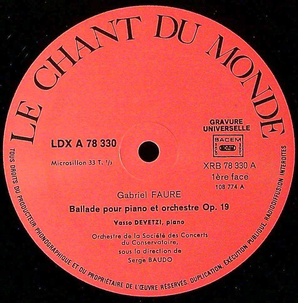 商品コード:1361-050b[Chant du Monde] V.デヴェツィ(pf)/ フォーレ:Pfと管弦楽のためのバラード, 組曲「ペレアスとメリザンド」