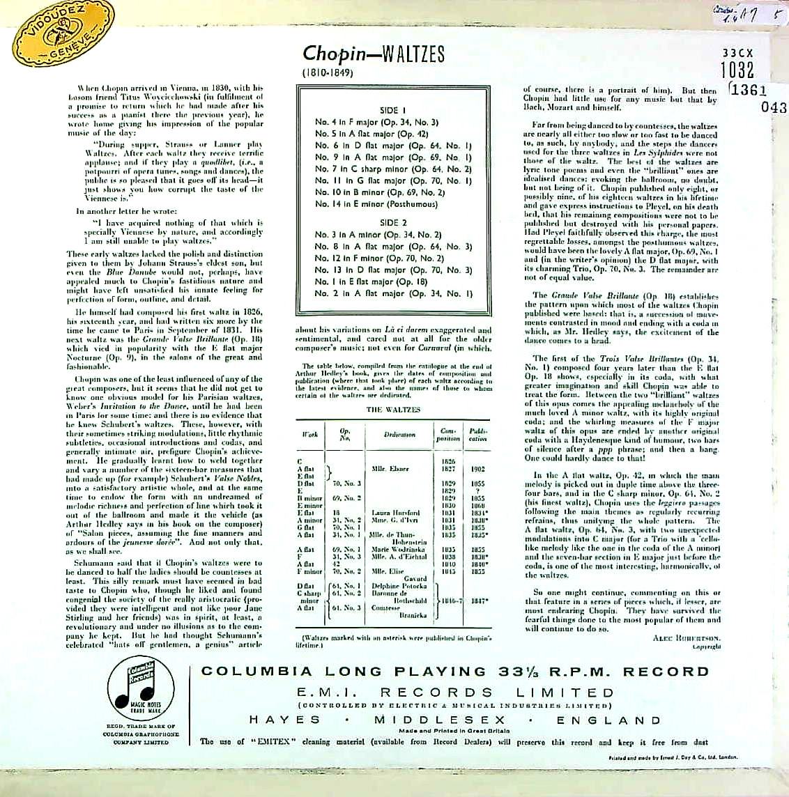 商品コード:1361-043[COLUMBIA] D.リパッティ(pf) / ショパン:14のワルツ