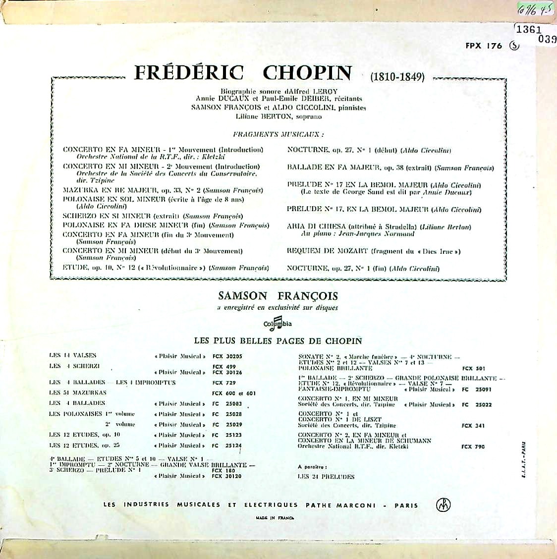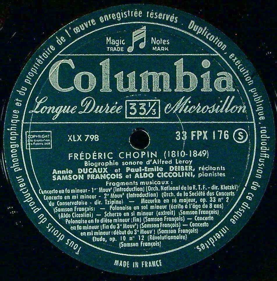 商品コード:1361-039p[COLUMBIA] S.フランソワ, A.チッコリーニ(pf)/ ショパン生誕150周年記念アルバム