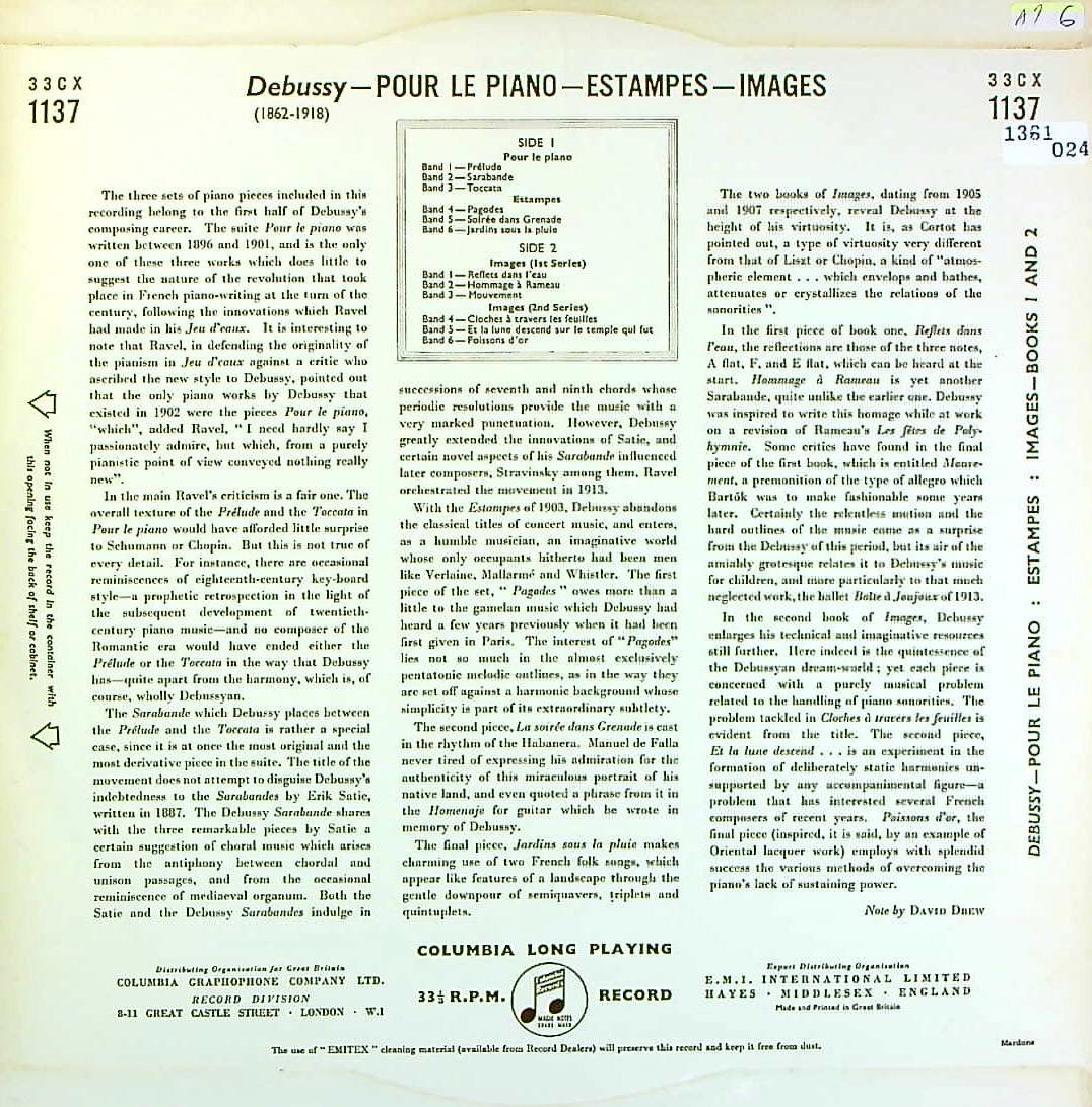 商品コード:1361-024n[COLUMBIA] W.ギーゼキング(pf) / ドビュッシー:ピアノのために, 版画 , 映像第1集&第2集