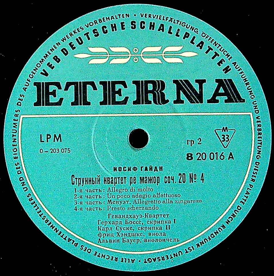 商品コード:1361-022[ETERNA] ゲヴァントハウスQt./ミハイロフQt. ハイドン:弦楽四重奏曲34番, モーツァルト:弦楽四重奏曲21番