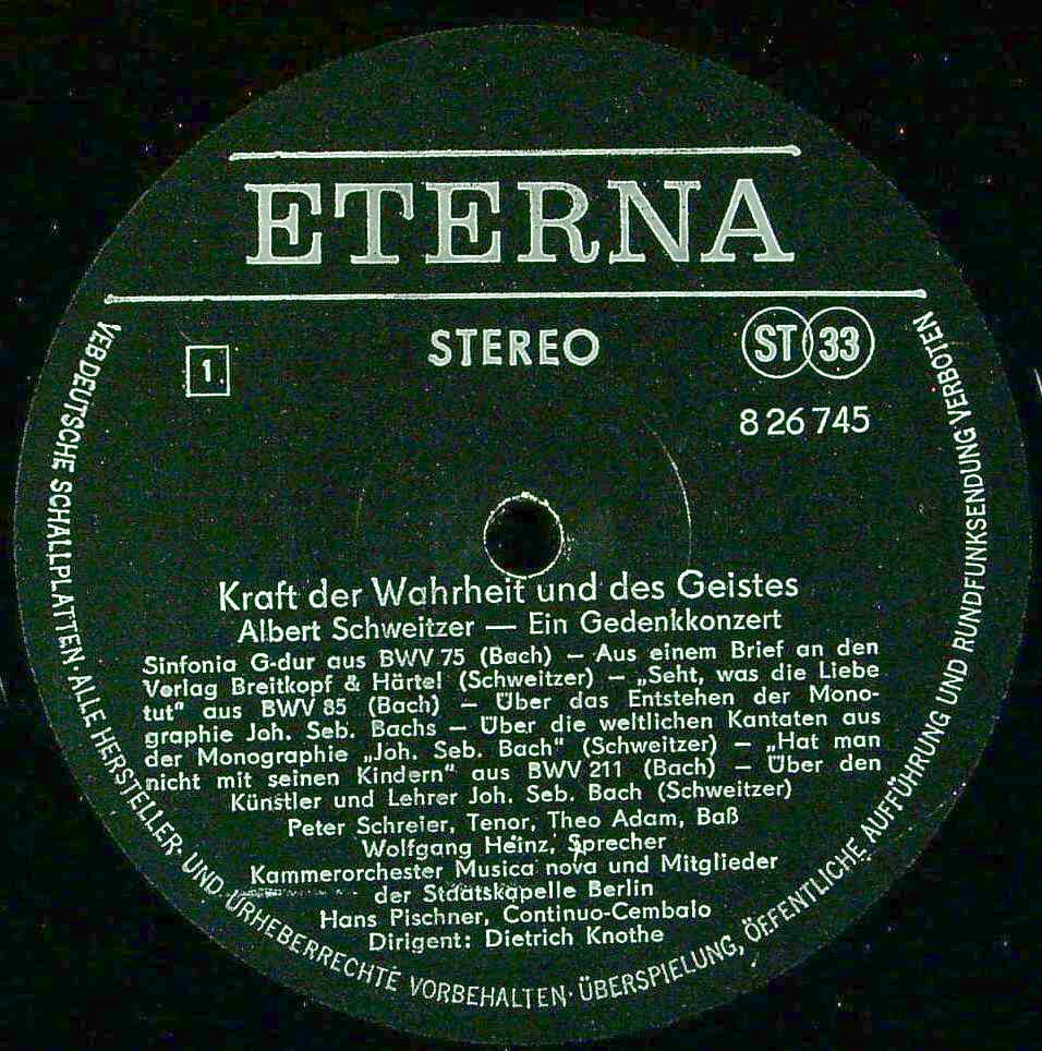 商品コード:1361-013t[ETERNA] K.ズスケ(vn)/ D.クノーテ/ 1975シュヴァイツァー記念コンサート/バッハ:カンタータB.75, B.85, B.211(各抜粋) 他