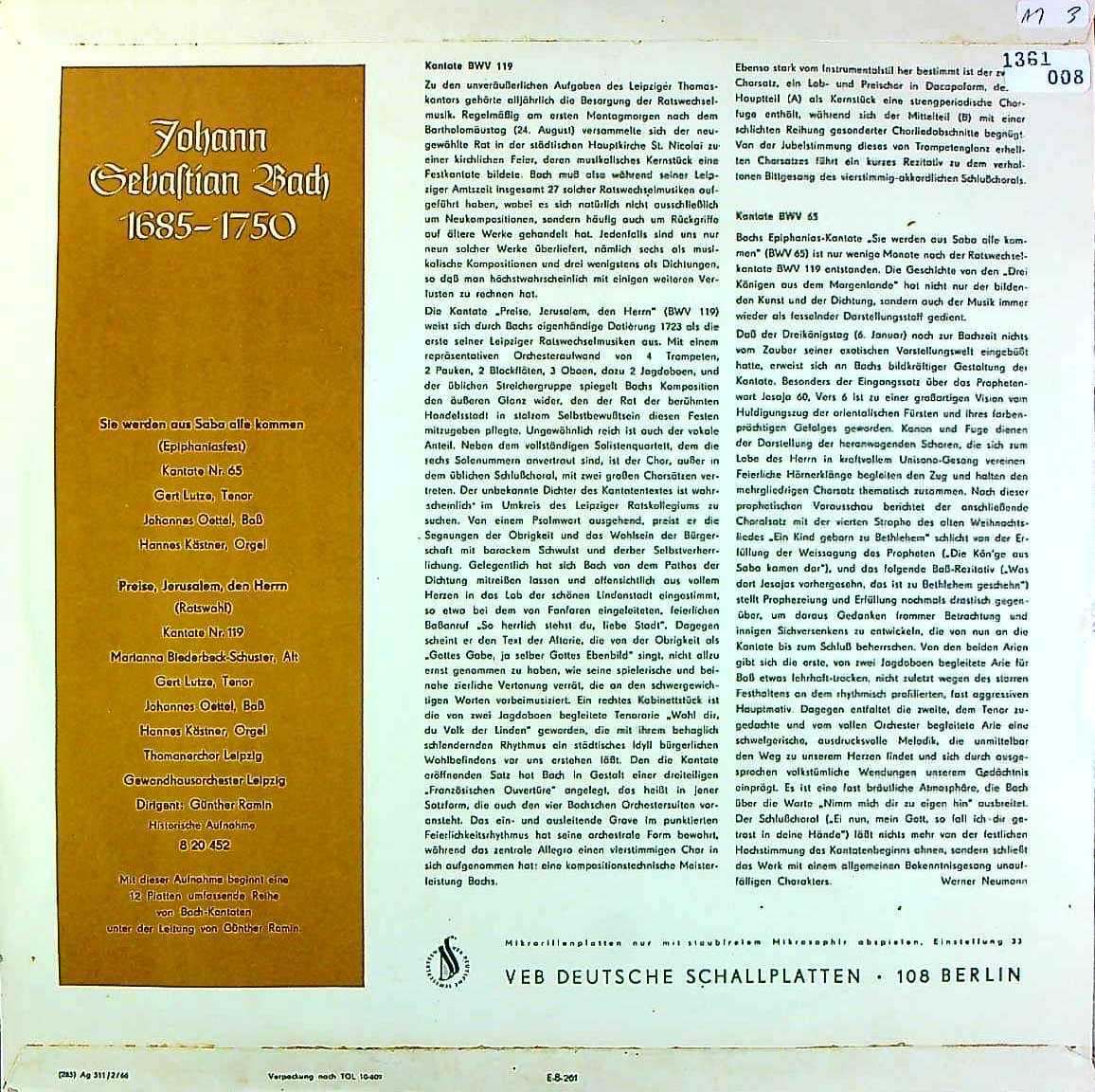商品コード:1361-008[ETERNA] G.ラミン/ バッハ:カンタータ集Vol.1/65番, 119番