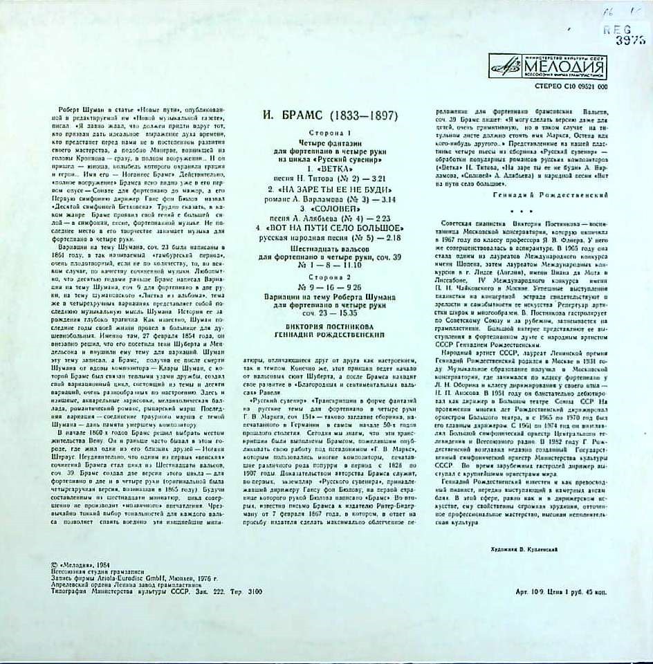 商品コード:REG-3973[露MELODIYA] G.ロジェストヴェンスキー, I.ポストニコワ(pf) / ロジェストヴェンスキー:ブラームス「ロシアの思い出」のモチーフによる4つの幻想曲 他