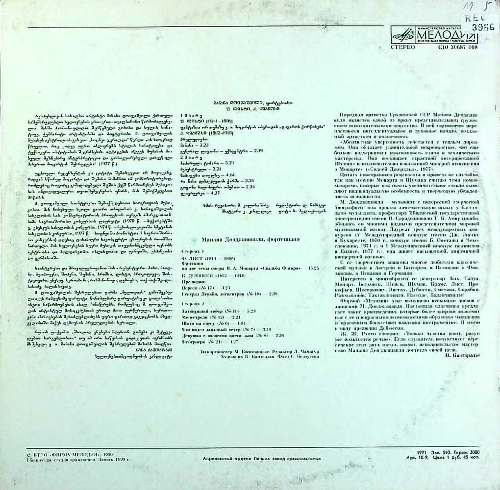 商品コード:REG-3966[露MELODIYA] M.ドイジャシヴィリ(pf) / リスト:「フィガロの結婚」のモティーフによる幻想, ドビュッシー