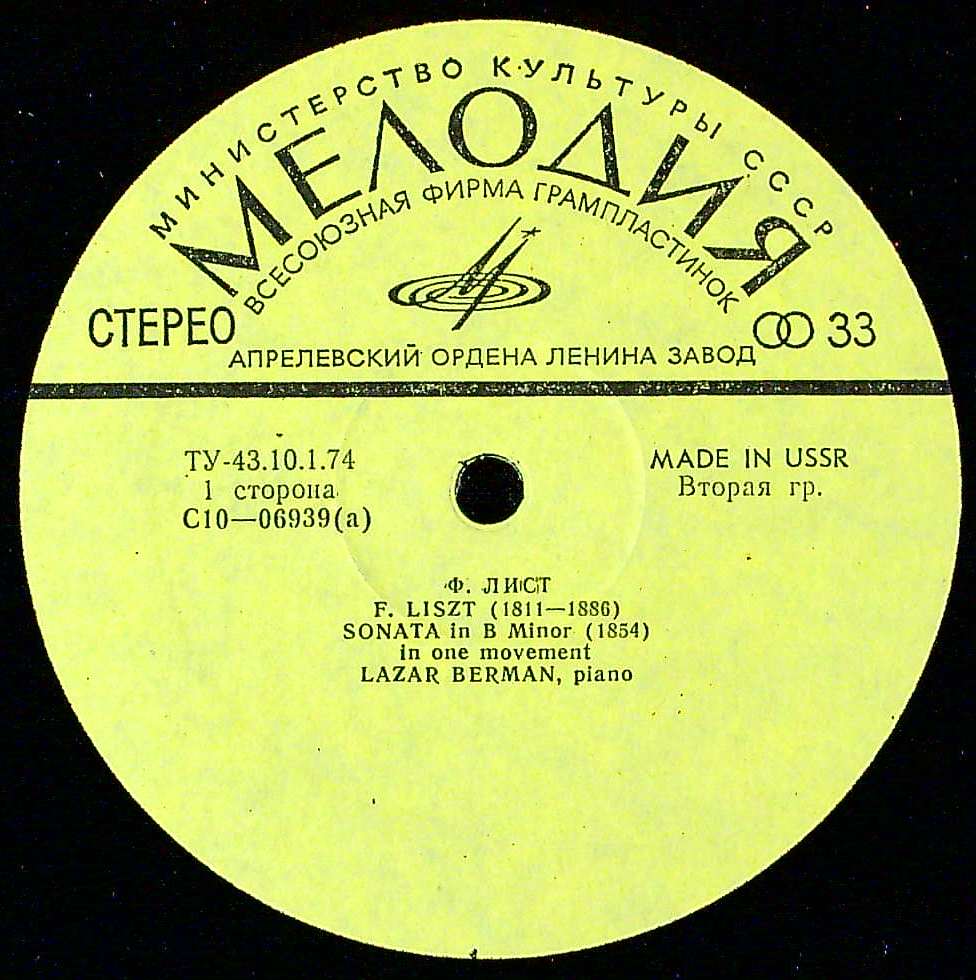 商品コード:REG-3964[露MELODIYA] L.ベルマン(pf) / リスト:Pfソナタ ロ短調, 巡礼の年~タランテラ 他