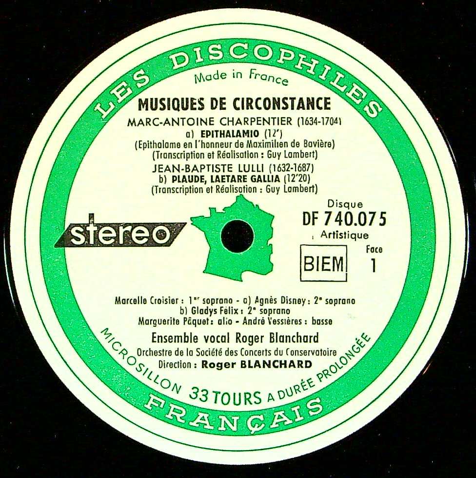 商品コード:1362-064[DF] R.ブランシャール/ Musiques De Circonstance(儀典作品集)/シャルパンティエ, リュリ, ドラランド
