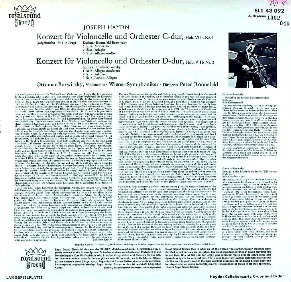 商品コード:1362-046t[TELEFUNKEN] O.ボルヴィツキー(vc)/ ハイドン:Vc協奏曲1番, 2番