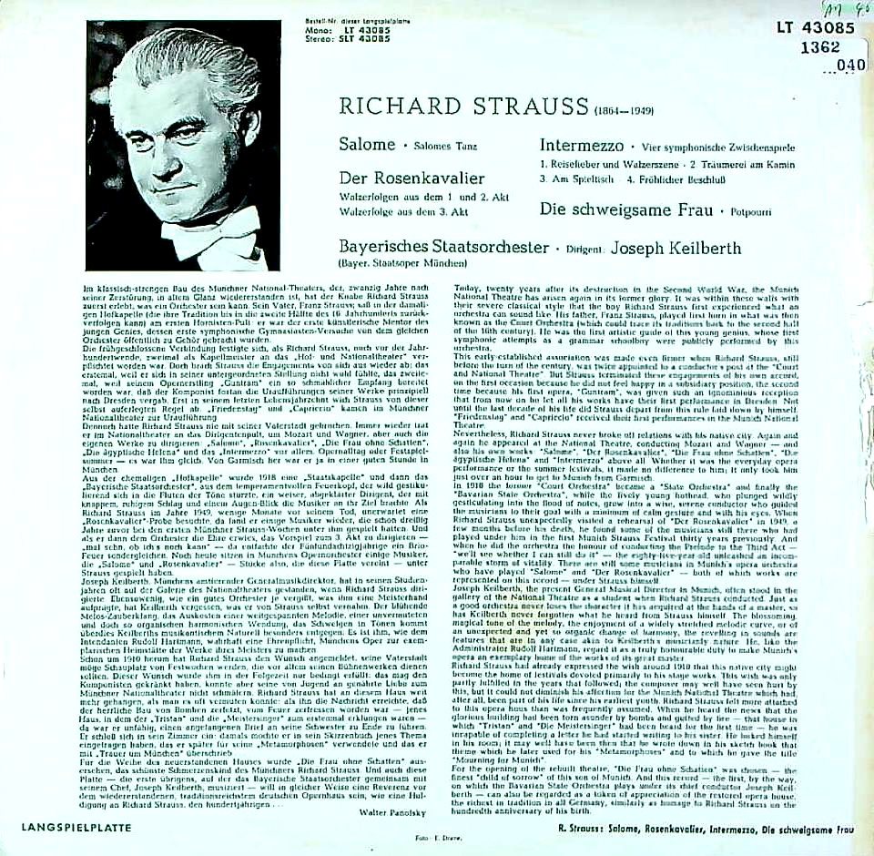 商品コード:1362-040p[TELEFUNKEN] J.カイルベルト/ R.シュトラウス:管弦楽曲集/
