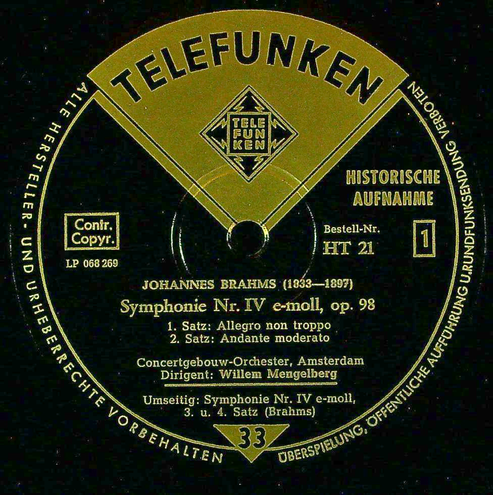 商品コード:1362-034[TELEFUNKEN] W.メンゲルベルク/ ブラームス:交響曲4番