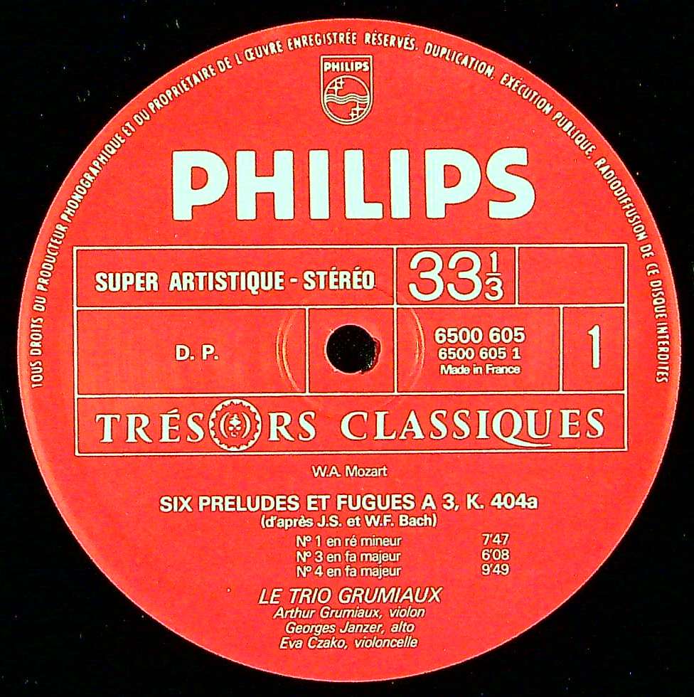 商品コード:1362-020[PHILIPS] グリュミオー・トリオ/ モーツァルト:バッハの作品による6つのプレリュードとフーガK.404a(全曲)