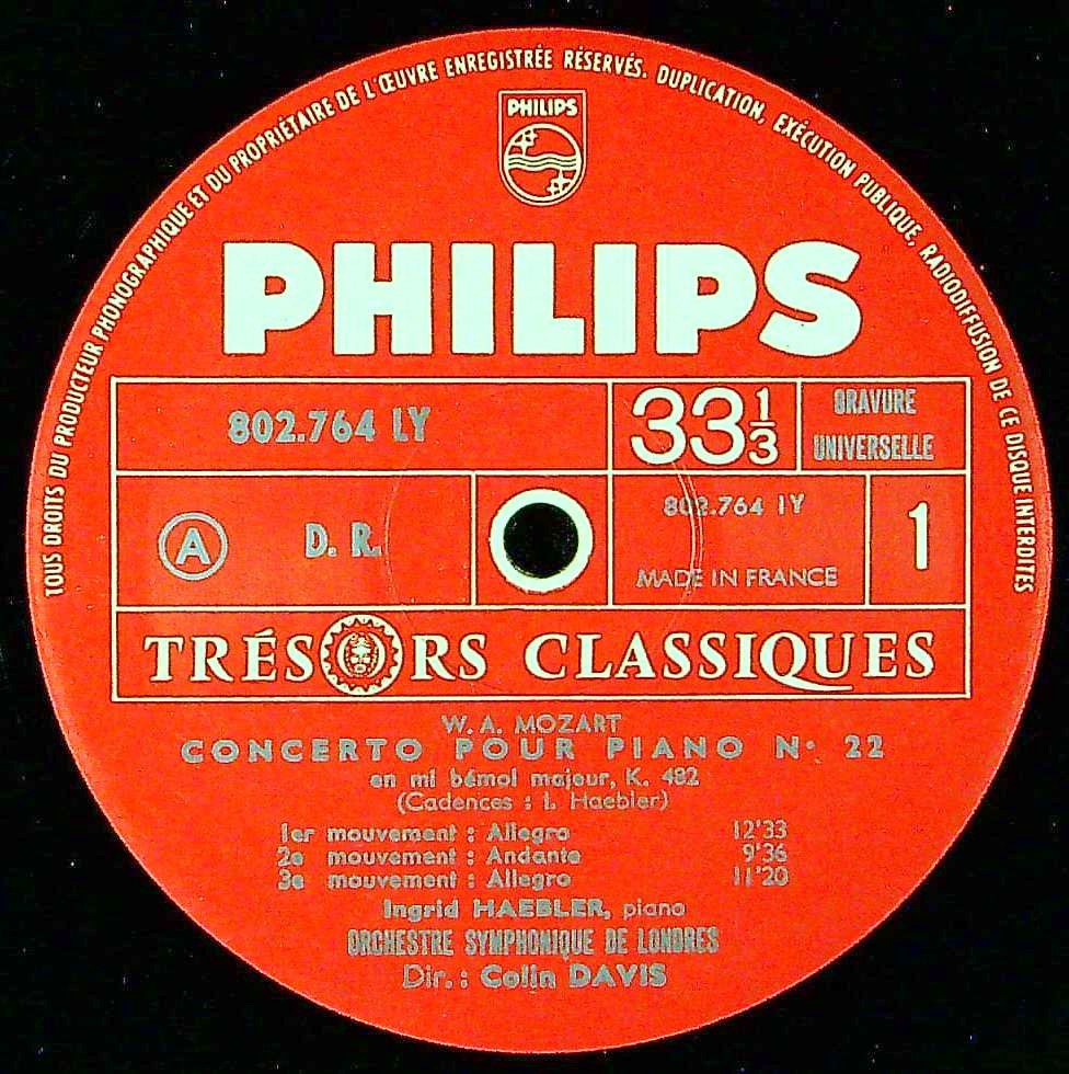 商品コード:1362-018[PHILIPS] I.ヘブラー(pf)/ モーツァルト:Pf協奏曲22番K.482, 18番K.456