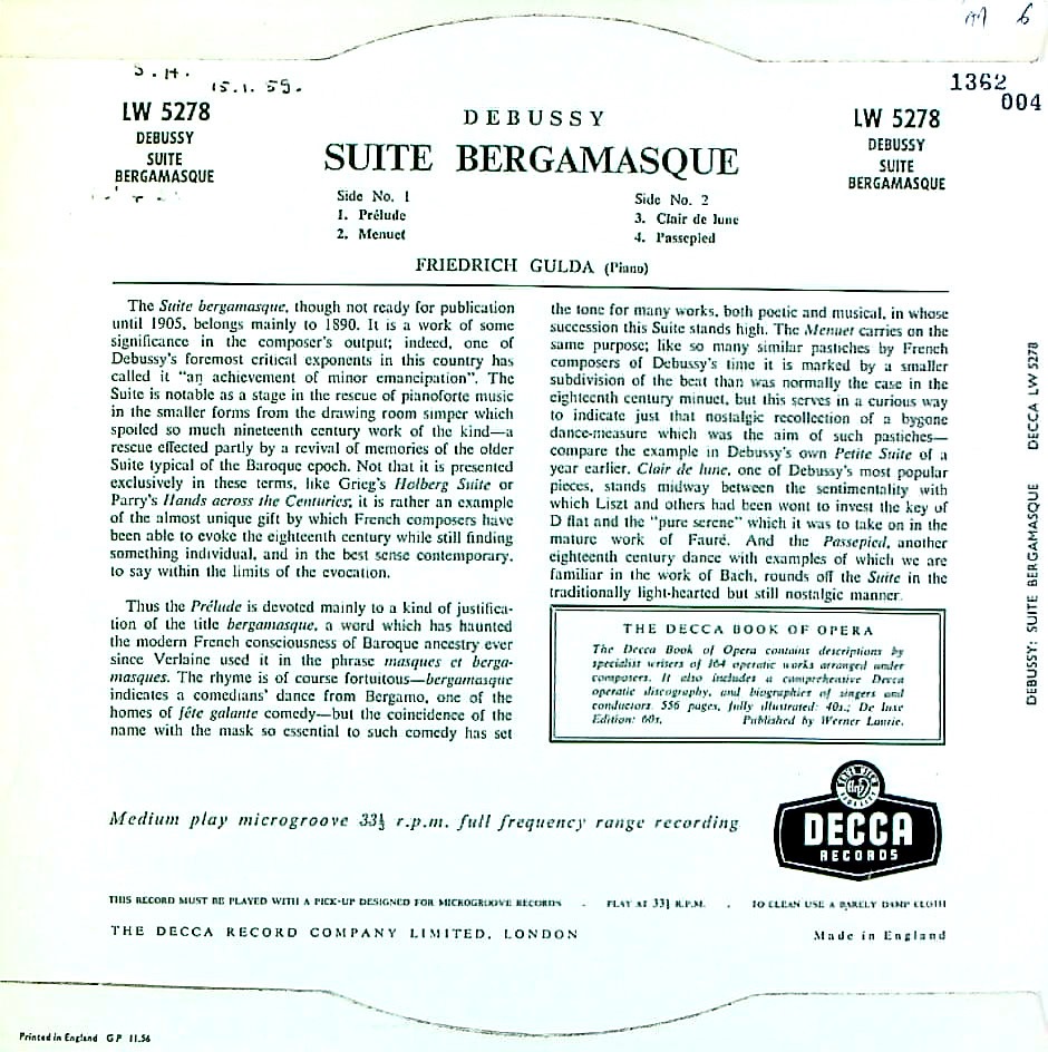 商品コード:1362-004[DECCA] F.グルダ(pf) / ドビュッシー:ベルガマスク組曲