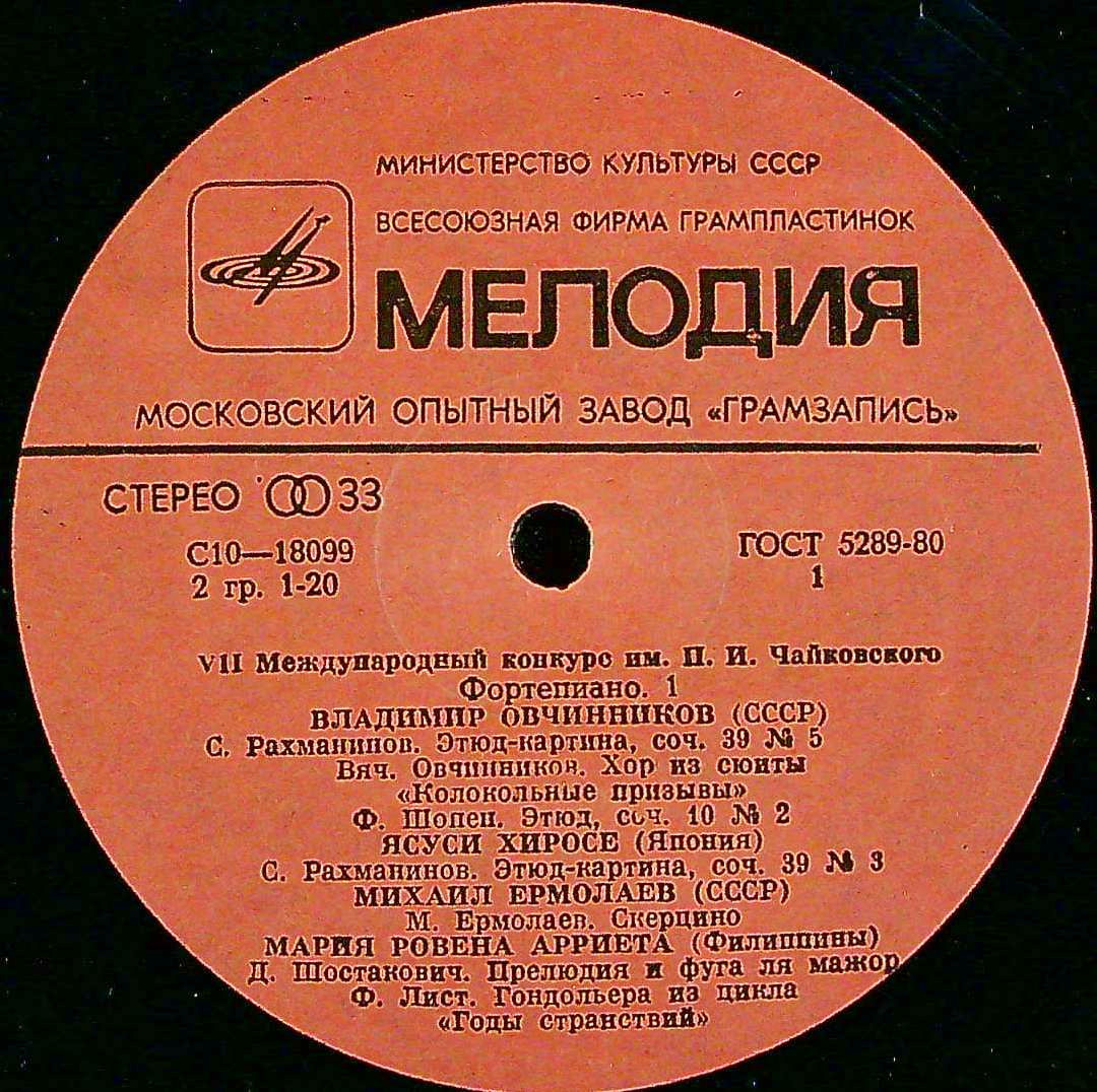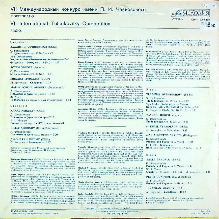 演奏者:V.オフチニコフ, 広瀬康, M.R.アリエタ, M.エルモラーエフ, C.ランダル, P.ドノホー, J.シェイムズ(pf)