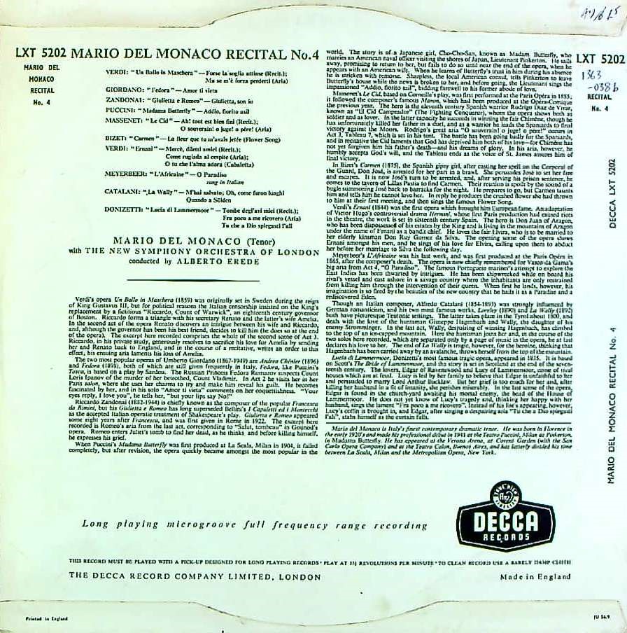 商品コード:1363-038b[DECCA] M.デル・モナコ(t)/ デル・モナコ・リサイタル/ヴェルディ, ジョルダーノ 他