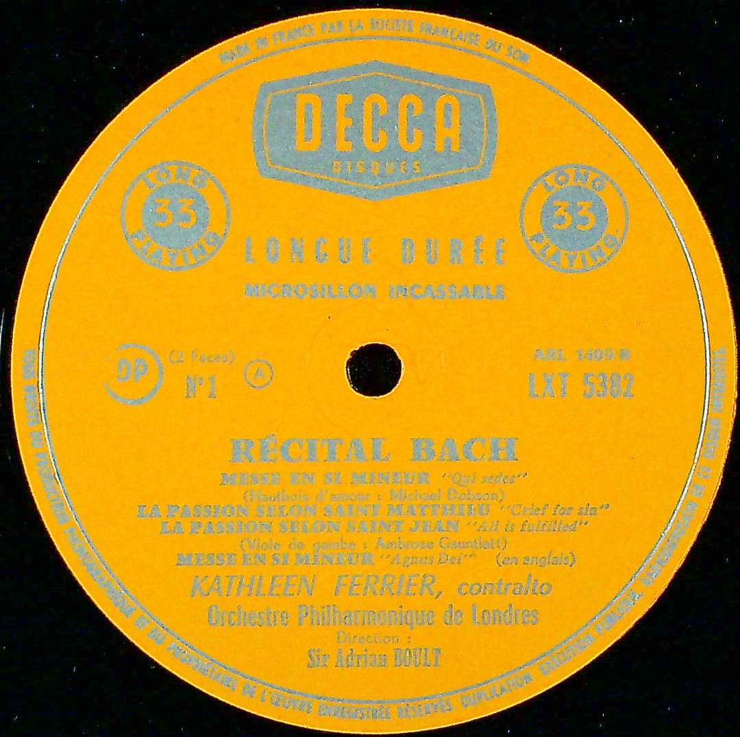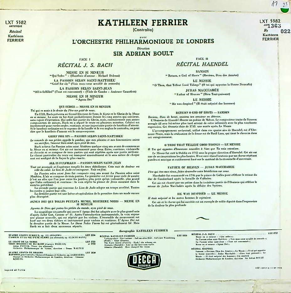 商品コード:1363-022[DECCA] K.フェリアー(ca)/ バッハ・ヘンデル・リサイタル