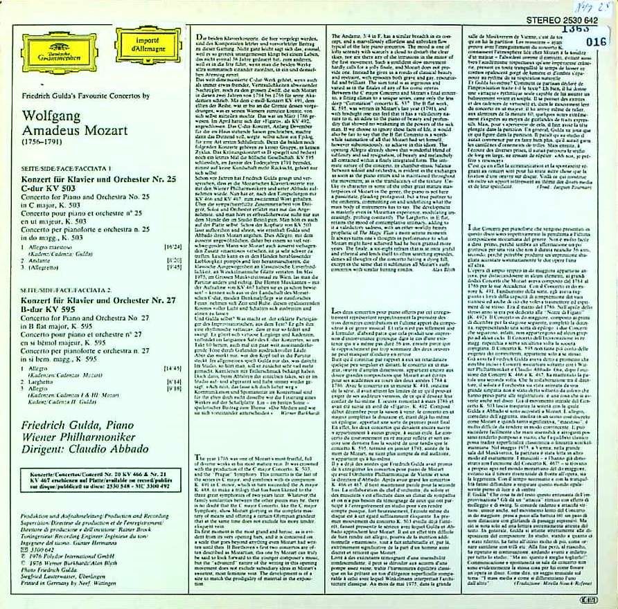 商品コード:1363-016[DGG] F.グルダ(pf)/ モーツァルト:Pf協奏曲25番K.503, 27番K.595