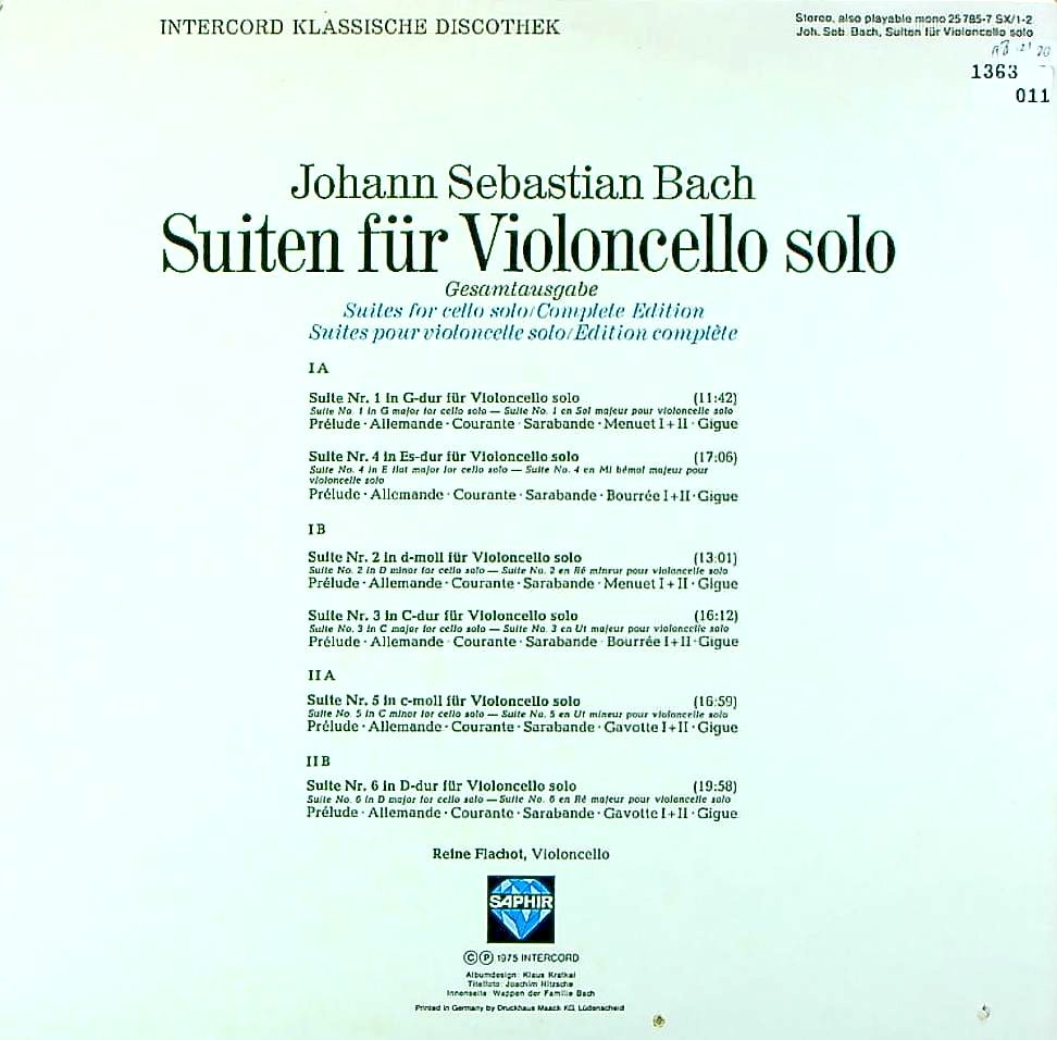 商品コード:1363-011[INTERCORD] R.フラショー(vc) / バッハ:無伴奏Vc組曲(全6曲)B.1007-1012