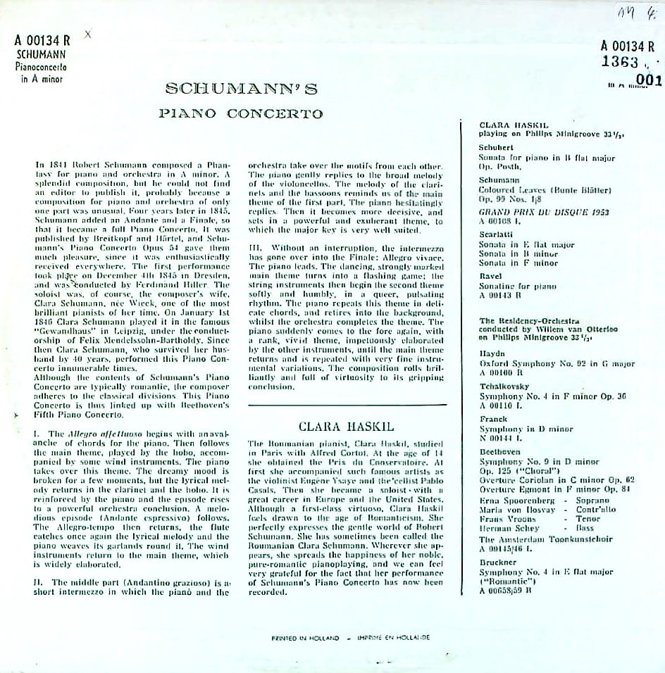 商品コード:1363-001[PHILIPS] C.ハスキル(pf)/ シューマン:Pf協奏曲