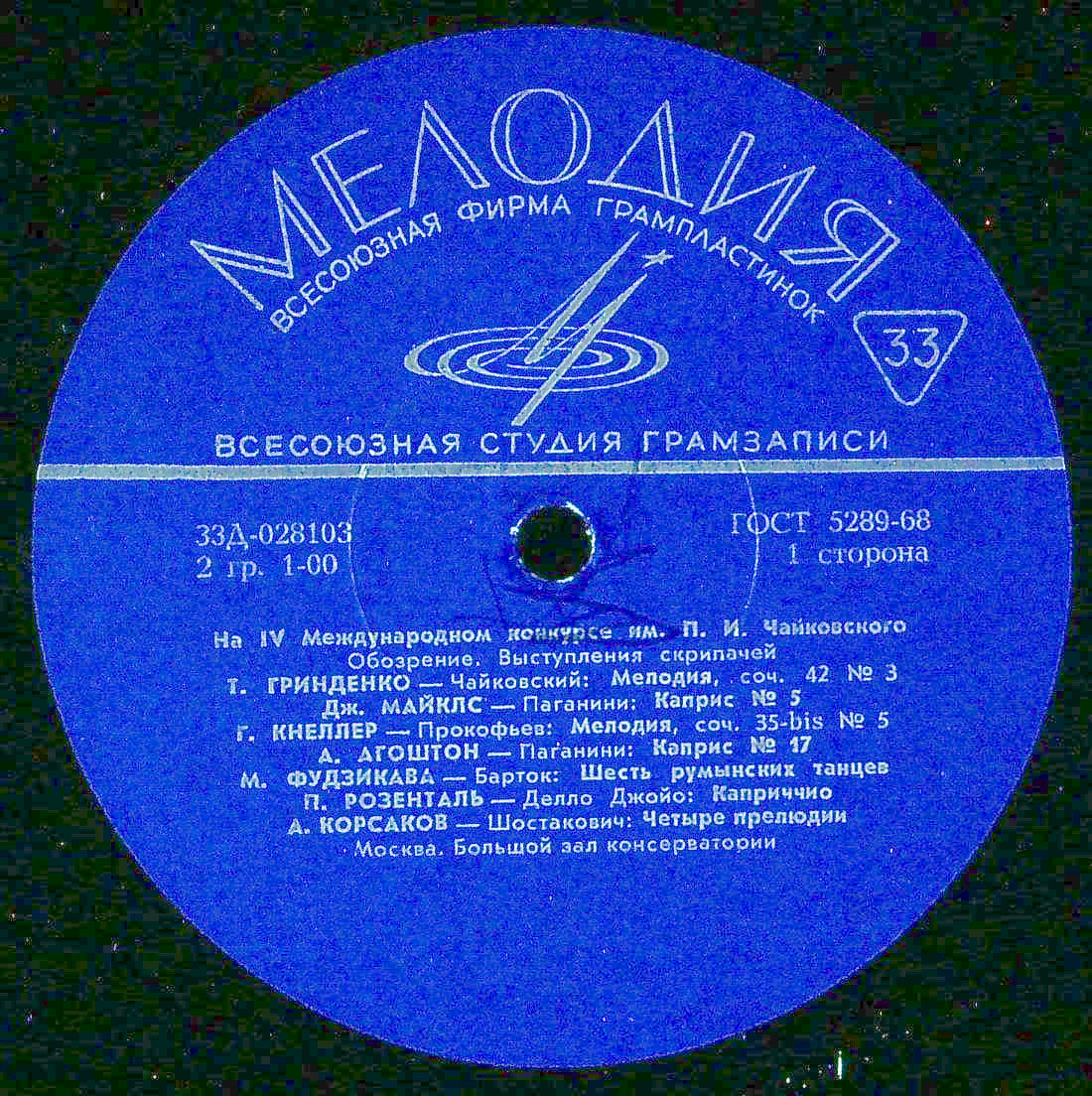 商品コード:REG-3997[露MELODIYA] 藤川真弓, P.ローゼンタール,(vn) 他/ 「第4回チャイコフスキー国際コンクール(Vn部門)」