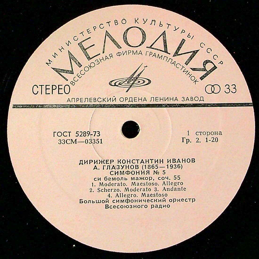 商品コード:REG-3995[露MELODIYA] C.イワノフ/ グラズノフ:交響曲5番, リャードフ:交響詩「魔法にかけられた湖」, 「キキモラ」 他