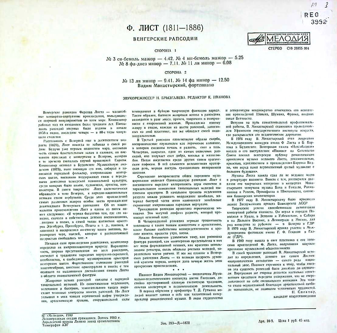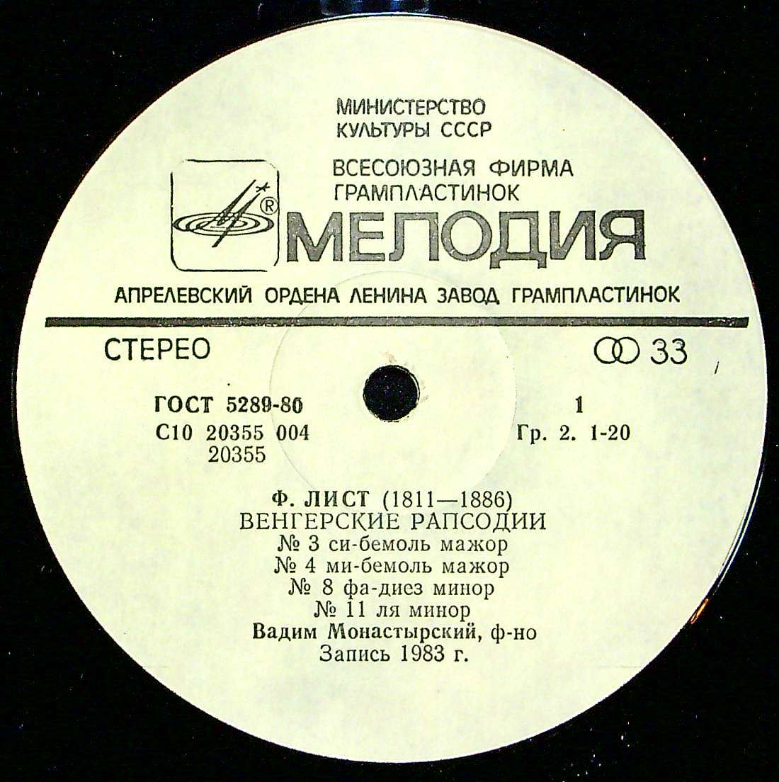 商品コード:REG-3992[露MELODIYA] V.モナスティルスキー(pf) / リスト: ハンガリー狂詩曲3, 4, 8, 11, 13, 14番
