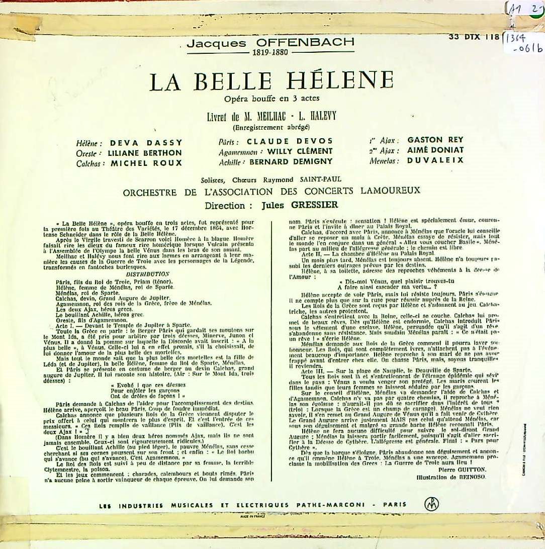 商品コード:1364-061b[Pathé] J.グレシエ/ オッフェンバック:喜歌劇「美しきエレーヌ」(短縮版)