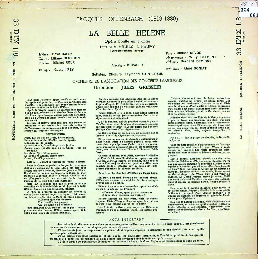商品コード:1364-061[Pathé] J.グレシエ/ オッフェンバック:喜歌劇「美しきエレーヌ」(短縮版)