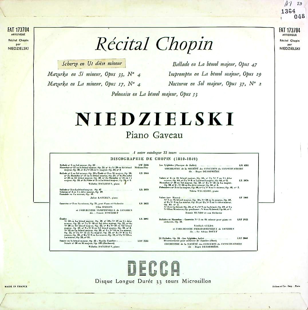 商品コード:1364-048[DECCA] S.ニェジェルスキ(pf) / ショパン・リサイタル